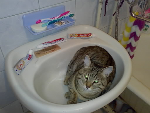 Вообще он у меня "неправильный" кот - воды не боится вообще, пьет исключительно молоко (с водой в миске играется), а еще он сторожевой, к двери бежит первый и всех входящих тщательно исследует, а так как он довольно крупный некоторые его побаиваются (по-моему у него в предках были собаки). А умный зараза какой, за полтора года жизни со мной он меня изучил как никто другой и прекрасно знает как заставить меня встать с постели утром чтоб я его покормила, знает как привлечь мое внимание, знает что мне не нравится в его поведении и иногда специально это делает, чтоб я за ним по квартире погонялась, развлечся так сказать... Во мне он по-крайней мере видит (а может мне кажется) хозяйку, а вот ребенка он явно считает ровней и ни во что его не ставит! Характерец еще тот, весь в меня! И мне вот интересно, если я заведу собаку, уживутся ли они друг с другом? Это вообще проблема или нет? |