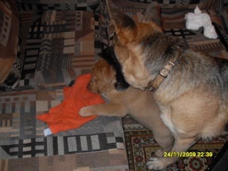 людии..., заберите щена..., прикольный малый..., а то его моя собака сожрет - ревнуут((((