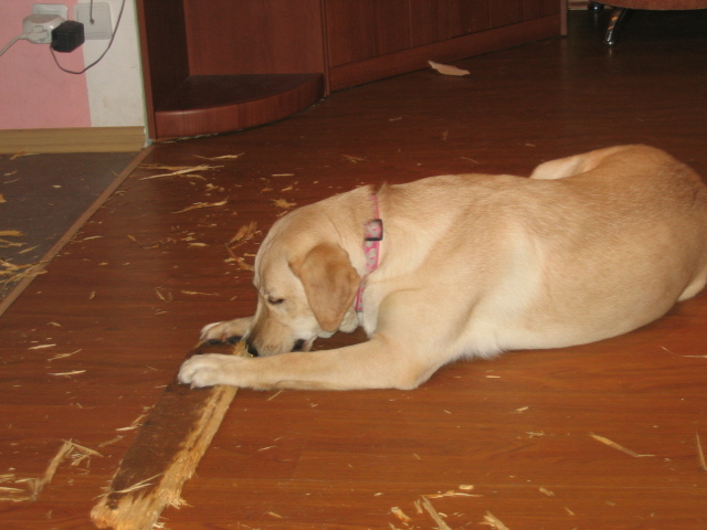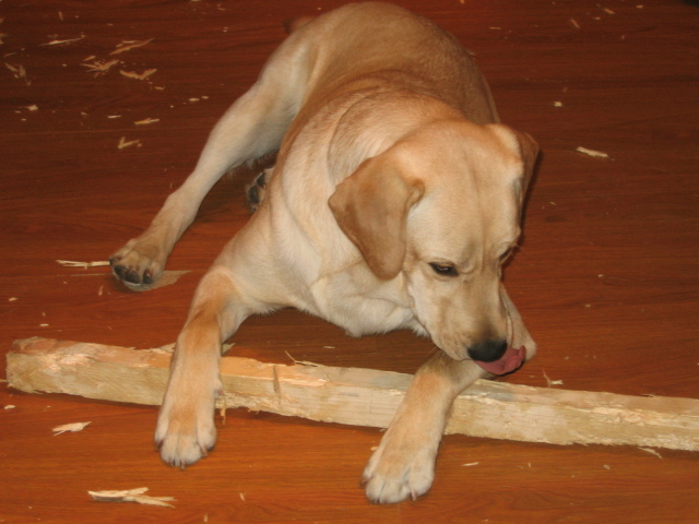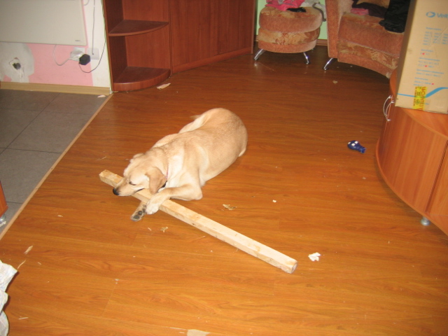 Я понял!!! у меня собака никакой не Лабрадор.. она новый вид Ретриверов: Аля-БОБЕР Ретривер!!! (за два дня сгрызла две палки)