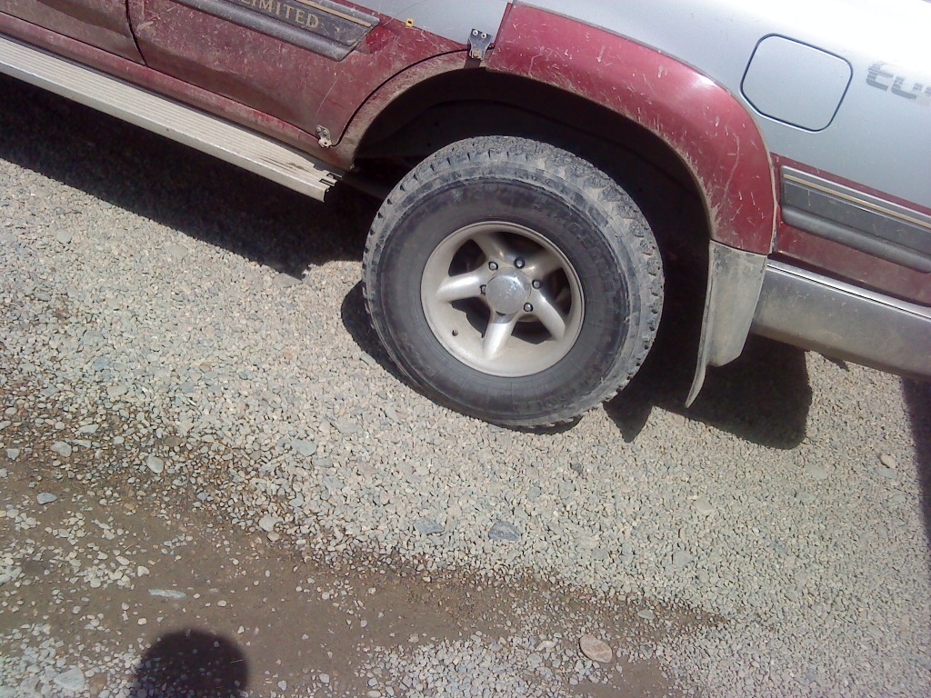 Так вот, после приезда на Супре в Воронеж, передние колеса практически без изменений!!! т.е. никаких вырванных кусков протектора и т.д. износа практически нет, ни одного пробоя передних колес!!! , однако задние колеса вхлам (Как вырванный камнями протектор, так и дыры с палец )!!!! изначально ехал без камер, по мере пробоя задних колес вставлял жгутики, а где дыры с палец, большие грибки с 6 слоем корда и соответственно камеру. Колеса стояли всесезонка- липучка (модель уже не помню) YOKOHAMA 225х60х16 (сразу скажу, машина была перегружена изначально, и скоростной режим был до 80 км.ч максимум..., на асфальте выше) З.Ы. Для себя сделал выводы: 1. в следущий раз буду ставить передние широкие и низкие брызговики (А-ля РАЛЛИ), с направлением выброса подлетающих камней наружу...(и пофигу на внешний вид) 2.Как только услышал, что камешки стучат по кузову, - снизь скорость- мешьше колес ремонтировать придеться. Сообщение отредактировал DANger - 5.1.2010, 14:01 -------------------- Прощай Колыма... Привет Камчатка !!!