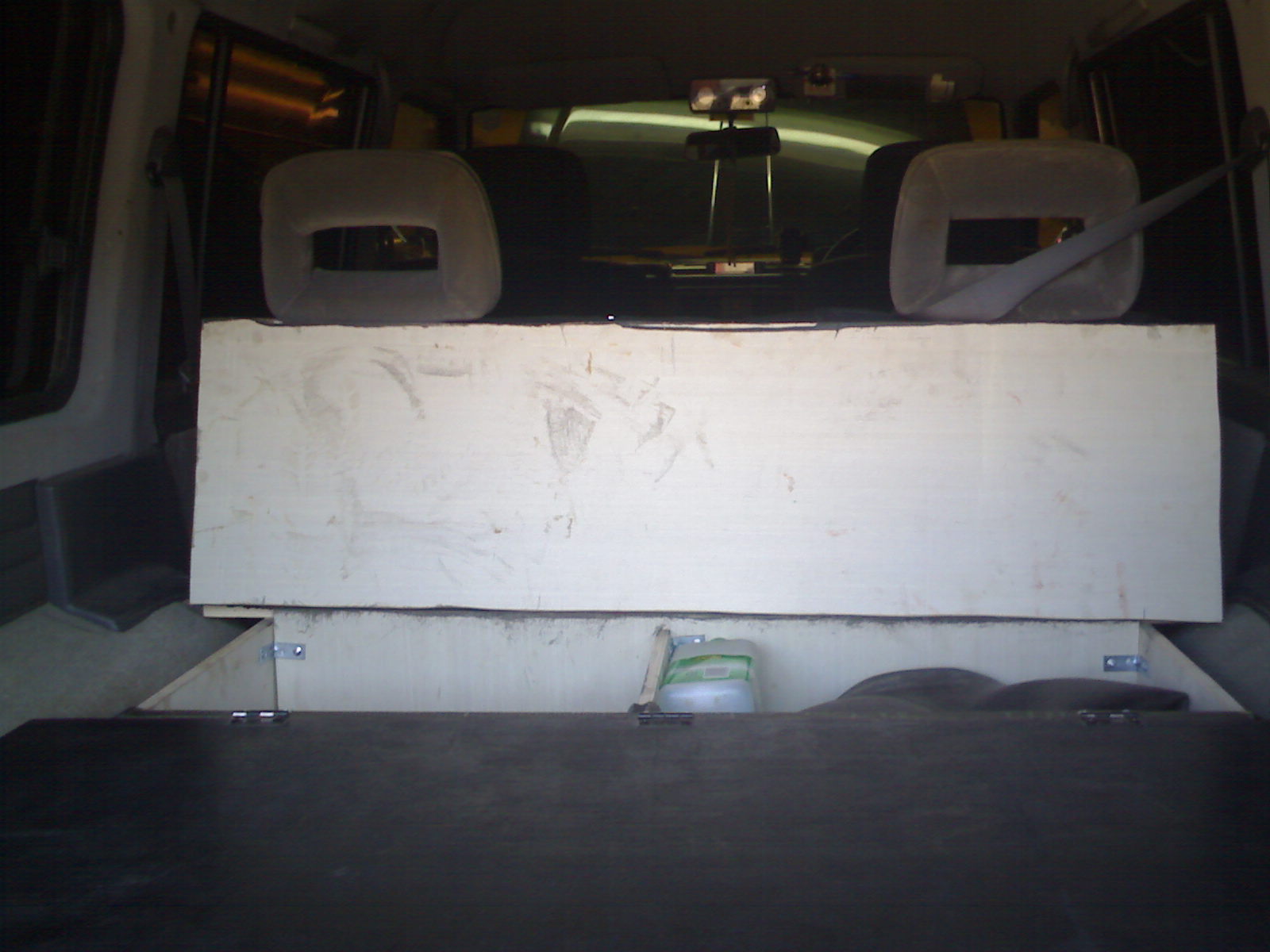 Тут до меня допЭрло.. При строительстве спальника надо один момент учитывать.... Необходимо его как-то к полу "привязывать".. Иначе на кочках прыгает... Я на днях прикрутил по бокам ящика скобы и прикрепил все это дело к штатным петлям в полу. Вроде пока молчит))