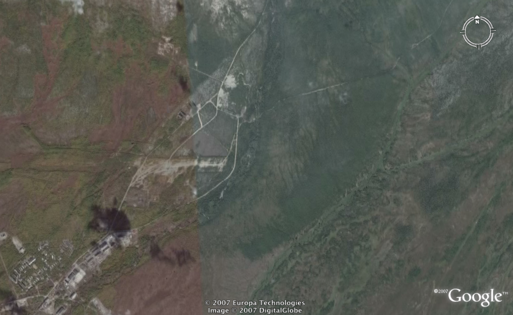 Слева внизу Уптар. В центре старая ВПП. Вопрос — куда ведут две дороги (северная и восточная)? одна направо, другая налево -------------------- 89148508740