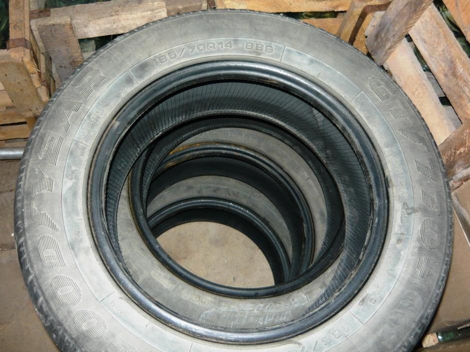 Есть еще комплект летней резины 185/70R14, сами баллоны целые, без грыж, использовались без камер, состояние протектора можно охарактеризовать как остаточные явления. Цена - 1 тыр. за к-т. |