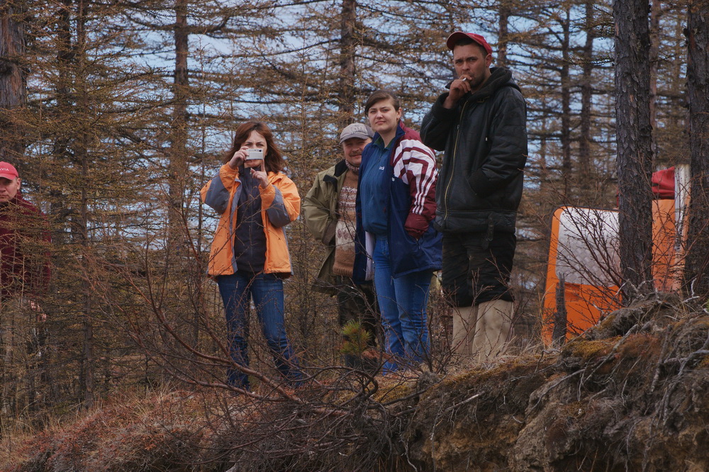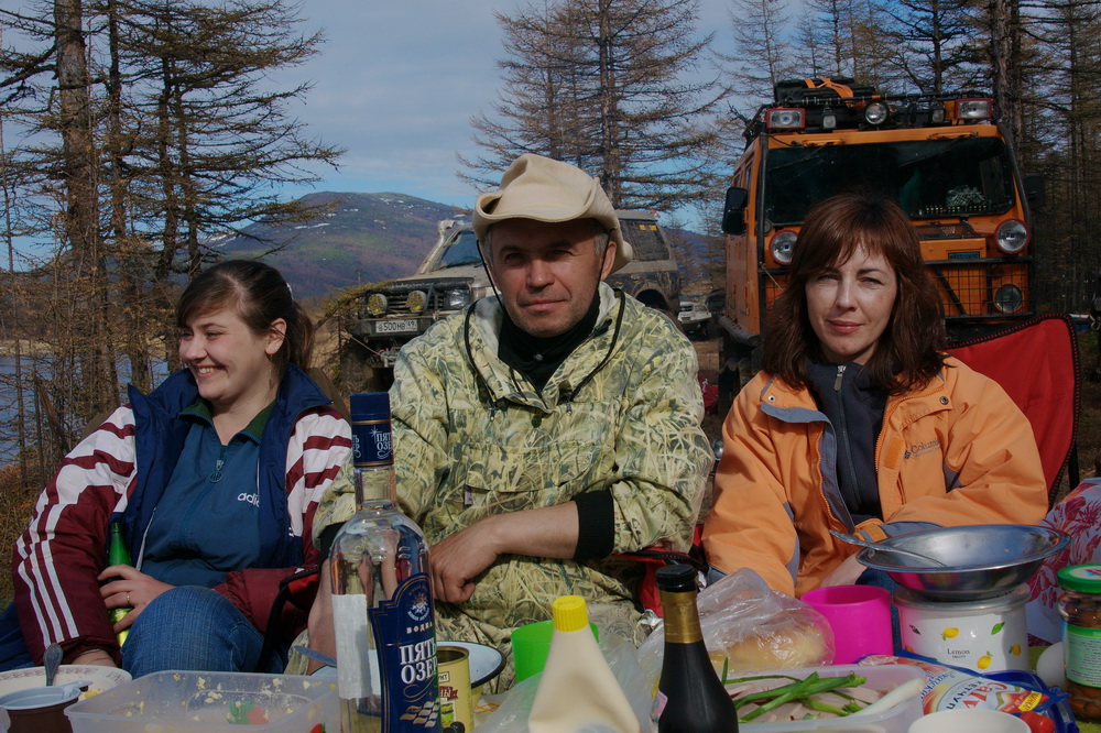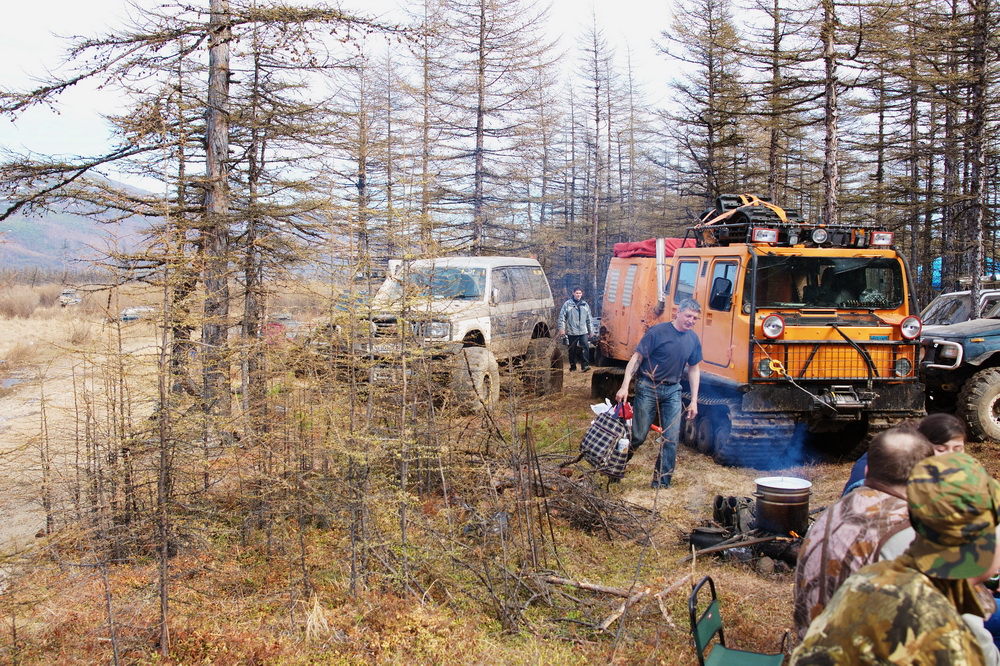 Ну вот и мы выбрались. Исследовали Атарганское направление, Нашли их следы влево по Адыкчану, проехал вокруг сопки и снова спустился в Адыкчан. Колёсники в это время пошли по другим их следам на Учесан. Скучковались, проследовали почти до Чистого, 5 км не хватило. Сломал натяжной каток, поменяли, поехали. Нашли их место разворота, хотя и до этого несколько раз видели раздвоенную колею БФ Гудрича (мад террайн), что говорило о том, что они вернулись. Сомнения были, но не убедившись, мы вернуться не могли. По GPS Вышло, что намотали около 120 км. Выползая с Адыкчана, Рыбакоп получил смс с известием о благополучном возвращении заплутавших джиперов.