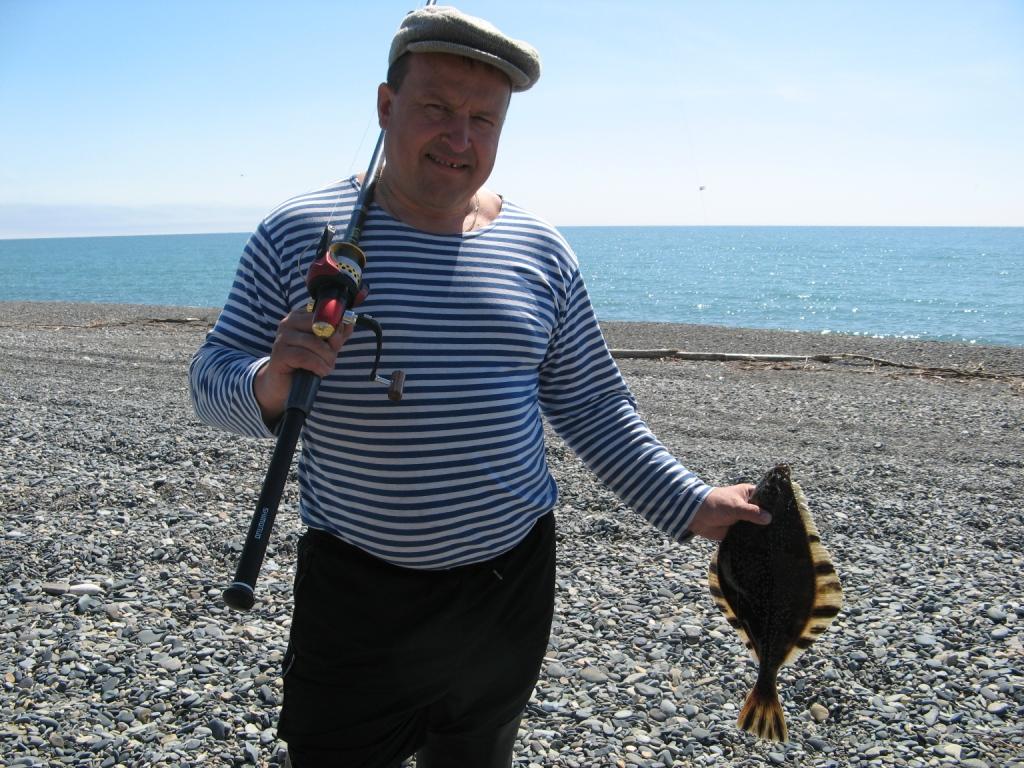 Тоже были на м. Чирикова (за мысом метров сто от берега) килограм сто того что держит товарищ на фото, про камбалу вообще молчу. Вечером в нагаево (дорога в порт, за пожарной станцией розовое здание котор продается за ним поворот к морю ) в пол прилива уек подошол оч много.