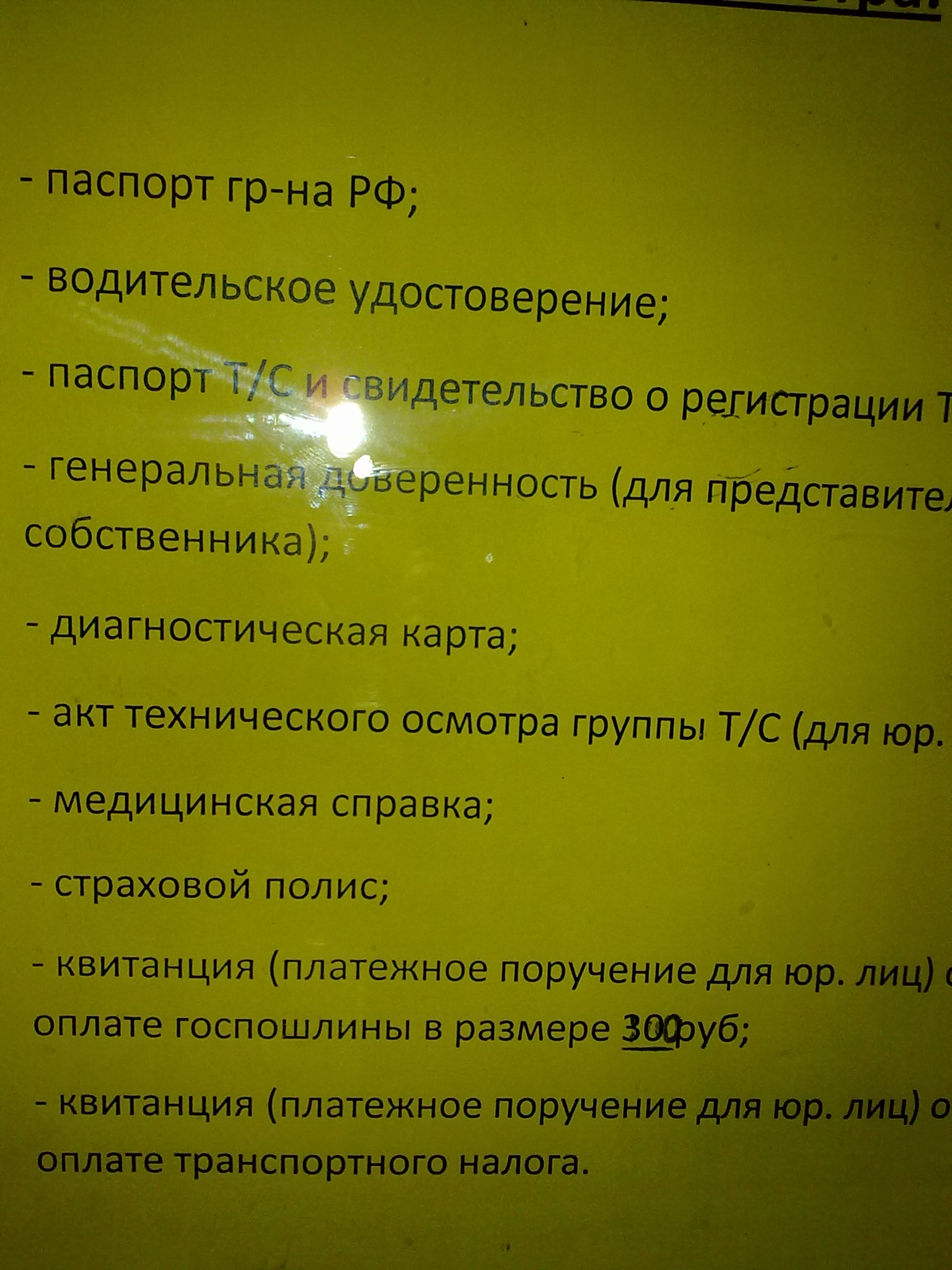 Цитата(Filmor @ 1.6.2010, 7:28) ссылка доступна только зарегистрированным MadMax, в перечне документов техпаспорт и свидетельство о регистрации. Что-то поменялось и можно пройти ТО без техпаспорта? Проверка длиться не менее 2-х месяцев ... Как же по Вашему проходить техосмотр всем тем машинам, что прибыли из других регионов и проходят проверку? -------------------- «Ад и рай – в небесах», - утверждают ханжи.