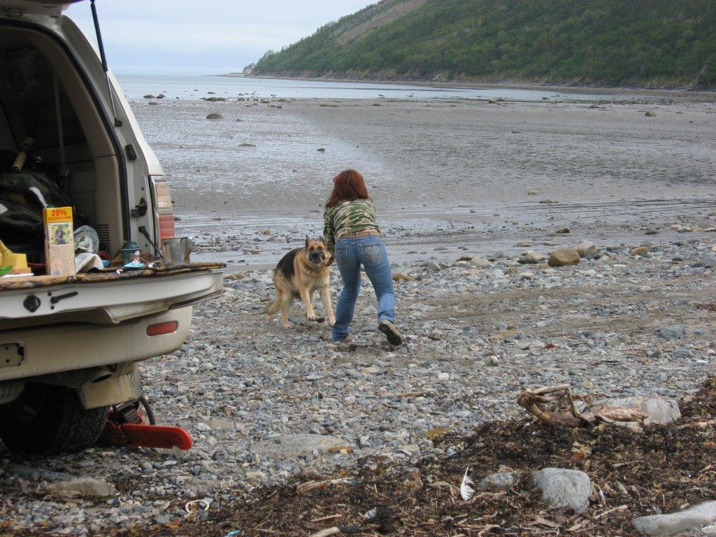 Посидели, отдохнули замечательно. Мелкий дождик совсем не мешал. Наигрались с собакой, кто сколько хотел. Нами вообще была в центре внимания. Кто хотел - вздремнул в машине. Желающие отведали коньячку. Кто то даже продолжил банкет водочкой, хотя и говорил что ему нельзя. (Иблис, ты нас убеждал или себя отговаривал?