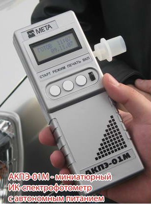 [/u] "На сегодняшний день самым точным, наиболее объективным и оперативным методом количественного определения алкоголя в организме является спектрофотометрический метод определения по выдыхаемому воздуху. Портативный анализатор алкоголя АКПЭ-01МП с автономным питанием позволяет быстро и точно обнаружить алкоголь в организме по выдыхаемому воздуху. Достаточно короткого выхода, а далее сверхчувствительный спектрофотометрический анализатор проведет высокоточный анализ на содержание алкоголя всего за 3 секунды. Принцип работы анализатора алкоголя АКПЭ-01МП обеспечивает абсолютную избирательность в отношении других, не измеряемых компонентов выдыхаемого воздуха, таких как: ацетон, бензин, диэтиловый эфир, уксусная кислота, дихлорэтан и другие ароматические компоненты выдоха человека. Результат измерения и сопровождающие сообщения индицируются на жидкокристаллическом индикаторе. Процесс определения алкоголя в анализаторе полностью автоматизирован и исключает возможность ошибки или фальсификации показаний. Отбор пробы выдыхаемого воздуха производится через сменный одноразовый мундштук и воронку для экспресс-контроля. Окончательный результат обследования пациента, а также сопроводительная информация, включающая дату и текущее время измерения, может быть распечатана на бумажном носителе в форме протокола. Анализаторы алкоголя применяются в практической деятельности Госавтоинспекции для установления состояния опьянения и освидетельствования участников дорожного движения, в наркологических кабинетах для определения наличия алкоголя в организме, а также для предрейсовых осмотров водителей транспортных средств. Функциональные возможности: автоматическое измерение концентрации паров этанола в выдыхаемом воздухе с предоставлением результата на жидкокристаллическом индикаторе; регистрация прерывания выдоха, неполного выдоха и наличия алкоголя в полости рта, а также отображение нарушений на дисплее и в протоколах; экспресс-контроль нетрезвого состояния по короткому выдоху; обнаружение запаха алкоголя по дыханию человека, при разговоре или коротком выдохе; определение наличия алкоголя у человека в бессознательном состоянии; скрытая фискальная фоторегистрация лица обследуемого с сохранением информации на съемной архив-карте; печать протокола измерений, содержащего заводской номер прибора, дату и время проведения измерения, значение концентрации алкоголя в выдыхаемом воздухе на встроенном печатающем устройстве; сохранение результатов измерений в фискальной памяти с регистрацией даты, времени, концентрации алкоголя, фото водителя; фискальная память на 40 000 протоколов; абсолютная избирательность: прибор не чувствителен к парам бензина, ацетона и ароматических веществ; автоматический контроль содержания паров алкоголя в окружающем воздухе. Опции: комплексный экспресс-контроль психофизического состояния экипажа самолетов, водителей, пассажиров автотранспорта и машинистов электропоездов по комплексу признаков заболеваемости: состав выдыхаемого воздуха, пульс, давление, температура; мгновенный комплексный развернутый анализ крови по выдыхаемому воздуху на основе установленных корреляционных связей состава выдыхаемого воздуха и первичных признаков заболеваемости; экспресс-контроль до 