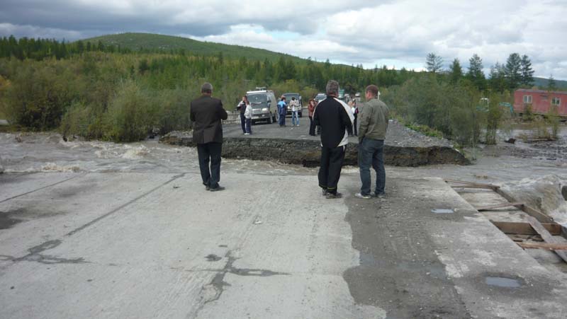 Автодорога «Палатка-Кулу-Нексикан» с 0км по 180км закрыта для проезда всех видов автотранспорта из-за размыва дорожного полотна и подмыва моста через р.Армань, движение открыто с 180км по 276км. 23.08.2010 по предварительным данным на 305км ФАТ «Колыма» размыт мост через р.Мякит. И по предварительным данным дорога Усть-Омчуг–Обо размыта в районе 4-5 км. Движение закрыто… -------------------- Политики – словно подгузники. Их надо почаще менять. И по той же причине.