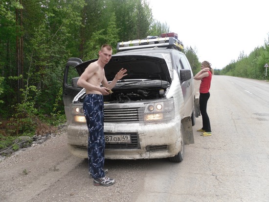 Для начала была перебрана вся ходовая часть После в бампер и решетку радиатора была вживлена сетка для уменьшения вероятности пробивания камнем радиатора ДВС, радиатора КПП и интеркуллера. После надета сбруя из фольгапласта на переднюю часть автомобиля (камни летят будь здоров) и апогеем защиты стало второе лобовое стекло (по-моему от шестерки) В общем думая, что я максимально защитил авто от повреждений, мы отправились в путь. Экипаж состоял из пяти человек: собственно меня – капитан, моей жены – штурман, и детей – вспомогательный экипаж – они же главные по ПХД и прочим мелочам. При выезде показания одометра составляли 137070км. Ехать решили по «теньке» поскольку была информация о плохом состоянии «основной» трассы. Для преодоления большого перегона между Усть – Омчугом и Усть – Нерой была взята канистра с топливом (20л). Если ехать по «основной» трассе, то такой необходимости не возникает. И так выезд назначен на 06.06.10г. Выезжаем согласно плану. Пока ехали по асфальту настроение было отличное – захватывала неизвестность, предстоящие приключения, но после того как выехали на грунтовку – настроение резко поменялось на «да быстрее бы уже цивилизация», а вспомогательный экипаж просто спал. Красоты наших краев впечатляют: Знак на перевале говорит одно, а навигатор другое – кому верить?? Добрались до Томпонского района На р. Алдан мы приехали около 14.00 по местному времени Увидев всего две машины я очень обрадовался, что заеду третьим, но не тут то было… Паром стоял и стоял, я ждал и ждал, народ набирался и набирался. Часам к 17.00 подъехали три машины администрации Якутска, и как водится – нас всех с паромом «побрили». Стали ждать дальше. К 19.00 подъехали четыре самосвала HOWO, человек курировавший данные авто прошмыгнул на паром. Не знаю о чем они там вели беседы, но в 20.30 паром стал швартоваться около самосвалов, а они, естественно, в конце очереди. Поскольку после швартовки очередь резко поменялась, то начался бедлам – кто проворнее и наглее – тот и переправился. Короче, поругавшись с другими желающими въехал я на эту баржу в середине очереди. Шесть машин осталось ждать следующего парома (собственно как и дня, поскольку время уже было около 22.00). Стояли плотненько Переправа составила около 40 мин. В пути постоянно преследовал дождь и этот вечер не стал исключением. Во время переправы погода сменилась с пасмурной на достаточно дождливую. Съехав с парома я обратил внимание на то, что HOWO остались на берегу и никуда не поехали, а УАЗики полетели как сумасшедшие. Обратил внимание…….но не придал значения!!! Дождик полил дорожку и она дала возможность ехать 90 км/ч. Минут через 15 после того как мы начали покорять просторы «большой земли» дождик кончился, а УАЗики полетели еще быстрее. Темнело….. Подъехав к п.Уолба было решено становиться на начевку, но в якутии проблема с карманами на дорогах. Я решил притормозить чтобы определиться где заночевать, но только нажав на педаль тормоза машина стала не управляемой. 5см разделяли наш автомобиль и полутораметровый овраг, который поставил бы жирную точку на отпуске, но......... |