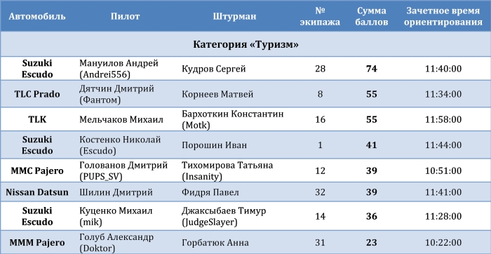 Хозяин тайги 2010, Внедорожное ориентирование |