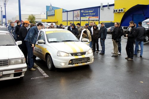 Мы купили самый дорогой ВАЗ в России, чтобы проверить его на прочность без прикрас Взять на тест-драйв Калину или Приору — постоянные читатели наших гаражных блогов просили нас об этом давно. Мы отпирались всеми конечностями. Мы консерваторы. Мы прикипели к своим иномарочкам. Нас хватило только на ссылка доступна только зарегистрированным. Но когда сам Премьер-министр устраивает PR-акцию «покупайте наших слонов» по дальним городам и весям на желтой канарейке — нееет, тут мы не смогли сдержаться. Надо же проверить: дурят нашего брата, или действительно пора отбросить стереотипы, что наш автопром — тупиковая ветвь развития человечества. Итак, решено: берем Калину «как у Путина» и устраиваем очередной беспощадный долгосрочный тест. Для тех, кто читает наши блоги впервые, расскажем их суть — мы покупаем за свои деньги автомобиль отечественной сборки, прогоняем его через всю Россию, а дальше эксплуатируем и периодически отписываемся о текущих результатах. Цель — понять, умеют ли в России собирать хоть какие-то автомобили. Сейчас у нас в гараже есть ссылка доступна только зарегистрированным и ссылка доступна только зарегистрированным, собранные под Санкт-Петербургом. И вот появилась третья машина, самая что ни на есть чистокровная россиянка. Стоит она кучу денег (более 400 тысяч рублей), и уж если ВАЗ даже за такую цену окажется провалом, то значит... впрочем, что это значит, каждый может додумать сам. Уже сам рассказ о покупке Калины Спорт достоин отдельной истории, которую мы вам для затравки и предлагаем. Объект желаний — «горячий» хэтчбэк Lada Kalina Sport модель 11196-33-474, 1,6 литра 16 клапанов, 98 л.с. Спортивная подвеска, обвес, спотивные кресла, задние дисковые тормоза, литые диски 15 дюймов и пр. Рекомендованная цена — 374 тысячи рублей (обычная Лада Калина в кузовах хэтчбэк и седан — от 262 до 338 тыс. руб.) Рекламный слоган 1: «Лада Калина — моя машина!» Рекламный слоган 2: «Наш город, кажется, влюбился». Из рекламного буклета Kalina Sport: «Спортивная версия Lada Kalina — это мощь, скорость и надежность, которые сочетаются со стильным и современным обликом. От обычной Lada Kalina эта машина отличается более легким весом, производительным мотором и спортивными экстерьером и интерьером, в том числе специальными спортивными креслами. Lada Kalina Sport не только быстра и динамично, но еще и крайне экономична.» В продаже — с марта 2009 года. Сразу скажем, что три Калины нам не потянуть Про желтый цвет, естественно, речи и не было — такую машину сделали специально для Путина. Поэтому мы решили выбрать из того что будет и частично обклеить желтым оракалом для антуража. По наивности мы думали, что сейчас откроем список московских дилеров АвтоВАЗа, обзвоним их и будем выбирать, какой цвет и какая комплектация машины нам больше понравится. Куда там! Оказалось, что найти машину здесь и сейчас — большая проблема. И не потому, что после правительственного вояжа «Спорты» стали разлетаться как горячие пирожки. Нет... Как признались в одном салоне: «Она редкая и столько стоит! Кто ее будет заранее везти? Ее же почти не покупают, так что у нас только под заказ». Машина действительно выпускается не очень большими тиражами, за 8 месяцев этого года было собрано около 1000 штук. Кстати, аккурат после путинского пробега ВАЗ изменил цены на все модели, Kalina Sport подорожала больше всего — на 6000 рублей, а об