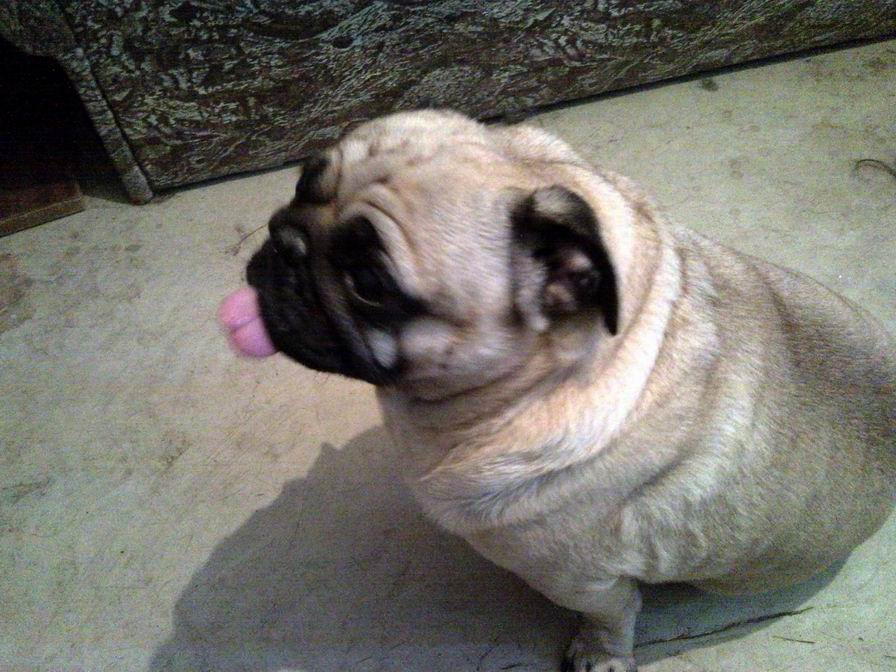 22 октября на ул.Ленина, в районе м-на "Подиум", найдена собака породы мопс.