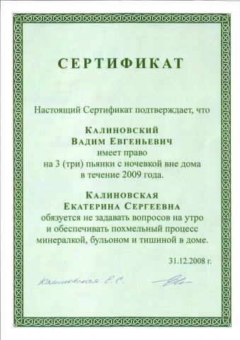 [attachment=70720:22102010...________.jpg] -------------------- «Быстро, дёшево и хорошо — из этих трёх вещей нужно всегда выбирать две. Если быстро и дёшево, это никогда не будет хорошо. Если это дёшево и хорошо, никогда не получится быстро. А если это хорошо и быстро, никогда не выйдет дёшево. Но помни: из трёх все равно придётся всегда выбирать два». Джим Джармуш.