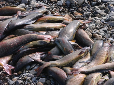 в общем то я единственный там ловил харитона прямо в поселке... больше негде было... наловил гдето треть ведра... доволен... в основном харитон... еще была кумжа.. как обычно соберу фотки - отсортирую и выложу %))) |