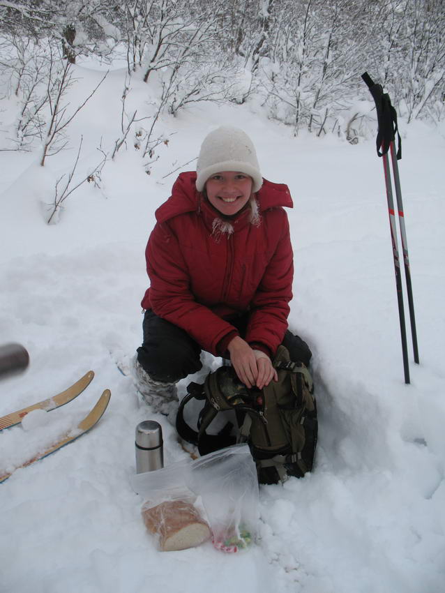 Воскресенье на Снежке - замечательная погода, штиль, -12, даже небо голубое. Протоптали с Сергеем и Софьей 6 км до развилки Малый/Большой перевал, да столько же обратно проскочили по лыжне. Снега - моооре! По следам нашим несколько человек от машин гуляло, оставляя их на паркове "Дома ветеранов Колымы".