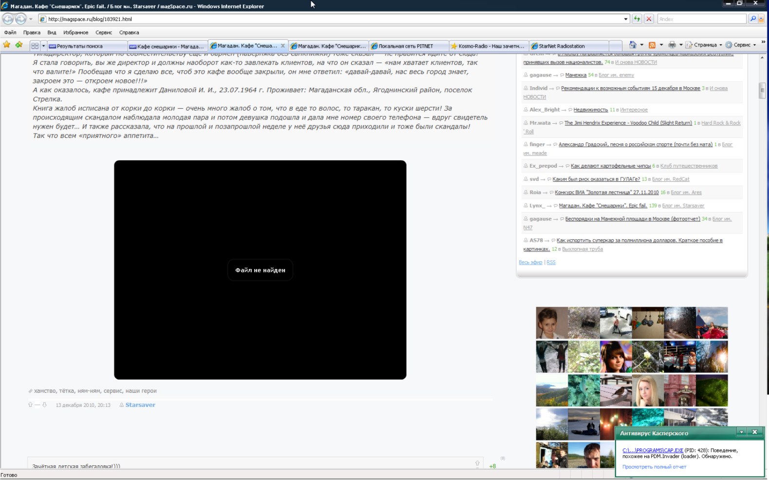 надеемся, что сюжет будет нормальный и со звуком... а пока по мтк во всю идет реклама, приглашающая провести НГ праздники в этом "кафе" Странно, насколько я знаю её должны были снять еще три дня назад........ Сообщение отредактировал DANger - 15.12.2010, 23:27 -------------------- Прощай Колыма... Привет Камчатка !!!