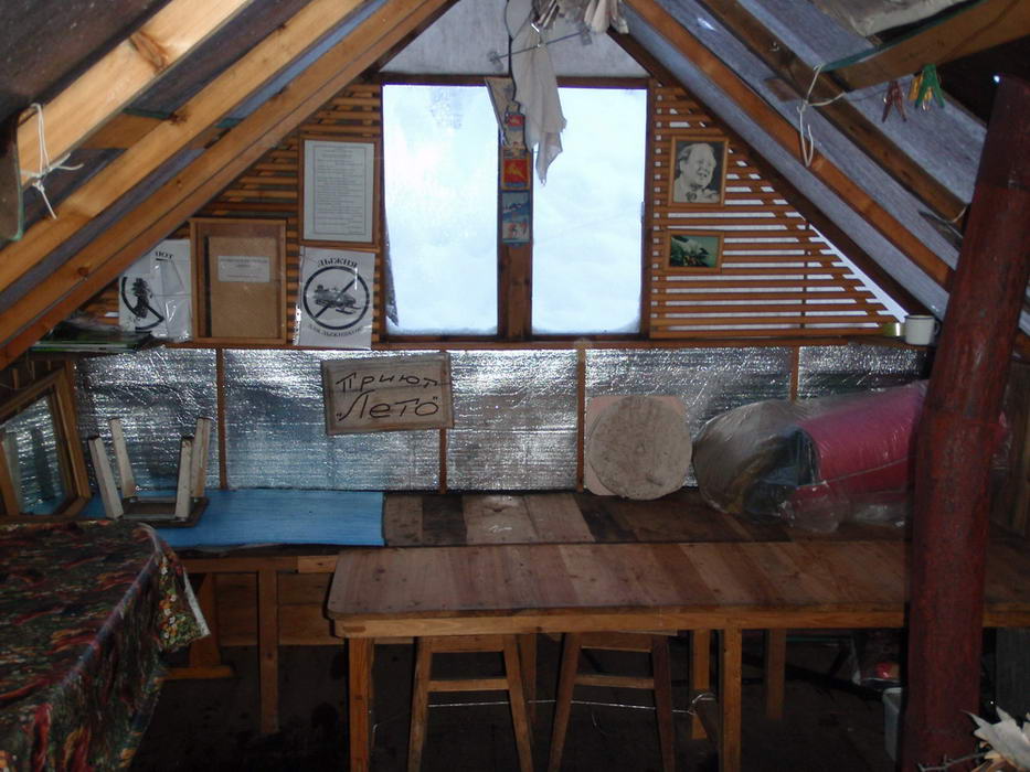 Не смотря на ночной декабрьский дождь, собрались и выехали из города в 10. Под Арманским перевалом второй день стабильные -2. По ходу движения повалил плотный снег и основательно начало задувать с гор. Решили далеко не ходить, а докапать "Приют Лето" и починить продавленный снегом сектор крыши над печкой.