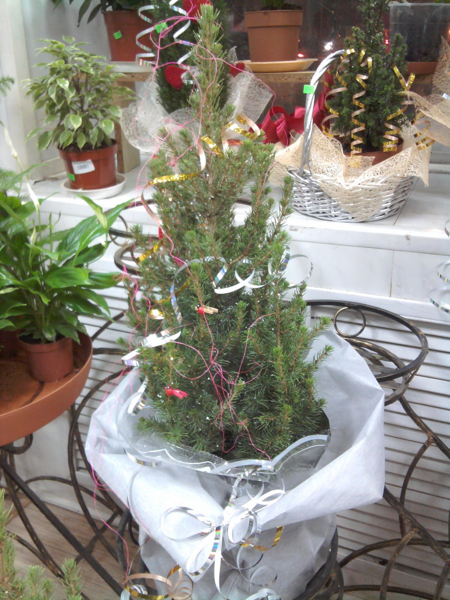 Сегодня случайно зашел в цветочный магазин. В нем продавались декоративные ели, кипарисы, араукарии! Ну апросто заглядение!!! Оцените сами. Цены от 500 (за кипарис) до 1500 р. за ель!