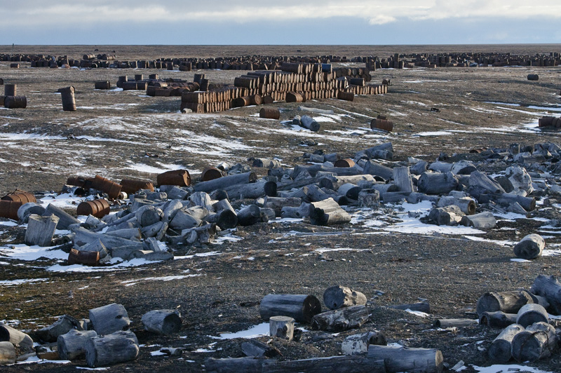 gorshkov_sergey 25 декабря, 0:16 Обычно фотографы, следуя девизу «Земля прекрасна», направляют объективы в прямо противоположную сторону от подобных сюжетов. Но иногда мы делаем исключения, чтобы привлечь внимание к проблеме, и в итоге, сделать нашу планету чище. Если вы прилетаете на арктическое побережье нашей страны, первое, что вас встречает – бескрайние горы мусора и россыпи ржавых бочек до горизонта.Взлетные полосы в Арктике – это военные, а военные в Заполярье – это прежде всего гигантские свалки. Впрочем, не только военные – любые попытки индустриализации полярных территорий сопровождались чудовищным загрязнением территории. «Остров Врангеля», еще называемый родильным домом белых медведей. Помимо белых медведей, тут в больших количествах встречаются полярные совы, белые гуси, черные казарки, овцебыки, песцы, моржи и другие животные. Ныне сохранность природных комплексов острова обеспечивается отсутствием населения, а также географической изоляцией.Однако до организации государственного природного заповедника государство пыталось освоить территорию разными методами: была создана фактория, отделение оленеводческого совхоза, вспомогательный военный аэродром и база ПВО. Ежегодно на остров завозились тонны ГСМ, значительное количество которого проливалось на землю и в прибрежную акваторию; тяжелая техника, тонны оборудования для работы, бытовое и продовольственное обеспечение жителей поселка с населением в 200 человек. Ничего, кроме личного имущества отъезжающих на материк, с острова не вывозились – все отходы, бытовой мусор и пришедшая в негодность техника остались на свалках на острове. Остров Врангеля не исключение, а всего лишь пример освоения нашего Севера. Местами пустые бочки частично вывозились на металлолом: все равно корабли, доставляющие на север грузы, идут обратно порожняком. Но даже вывоз металлолома убыточен: для выхода хотя бы в ноль, бочки изначально должны прессоваться на берегу, а прессов там, как правило, нет. На острове Врангеля металлолом сконцентрирован на южном побережье, в местах, где ранее находились различные организации: аэропорт, база ПВО, метеостанция Росгидромета, погранзастава и поселок Ушаковское. В настоящее время большая часть бочек и емкостей пришла в негодность. В них осталось десятки тонн ГСМ (бензин, масло, дизтопливо). Из проржавевших бочек происходит сброс этих веществ на землю, что приводит к загрязнению заповедной территории. Часть бочек была складирована и брошена на морских косах и на берегах рек. Размытие этих кос и усиление штормов приводит к смыву бочек в море, в дальнейшем их выбрасывает на берег в различных частях острова. Помимо бочек и промышленного мусора, российская Арктика загрязнена и предметами поопаснее: вдоль всего Северного морского пути в заброшенном состоянии находятся сотни радиоактивных источников питания – РИТЭГ'ов, используемые в советские времена для питания навигационного оборудования, например, маяков. В качестве топлива в них используется стронций-90, смертельно опасный изотоп, сохраняющий опасность около тысячи лет.На острове Врангеля аналогичный радиоактивный источник питания был смыт морем в бухте Роджерса. Своими силами вывезти источники не представляется возможным, мало того, это еще и крайне опасно. Для поиска и вывоза РИТЭГ требуетс