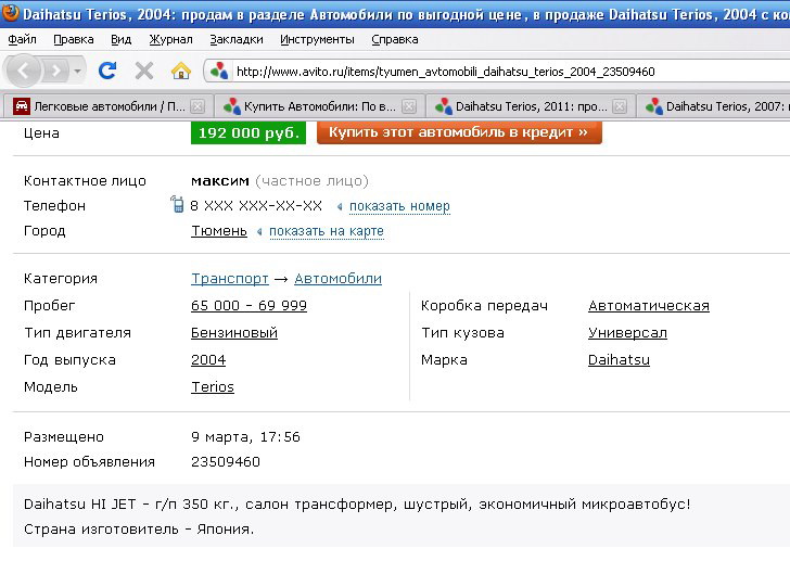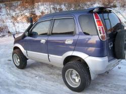 Териос, 1998 г.в HC-EJ белого цвета, покупали в августе 2010, в октябре меняли радиатор (треснул верхний бачок, радиатор с Камика K3-VET, была одна проблема с сапуном сброса давления, на родном радиаторе он есть а на камиковском его не было, пришлось заглушить=)) Вчера я задал вопрос почему у меня обороты чуть выше на холостых чем обычно, у дюйма сказали что причина и есть этот сапун)) это не смертельно тока расход чуть-чуть больше)) Впечатления от автомобиля как есть: плюсы - проходимость (справляется на ура, не разу никде не застревали) компактность само собой ну и наверное взаимозаменяемость запчастей) минусы ( лично для меня их больше, т.к носится на нем в основном мамик, её так все устраивает) слабый движок HC, както вяло он его тянет, особенно в горку=) салон. достаточно дешевый, хоть это и не главное) никакой шумоизоляции впринципе=) но то что убило это не регулиуемая рулевая колонка, может кто знает если снять кожух там есть какой нибудь регулировочный болт??? с моим то ростом не очень удобно сидеть за рулём)) и еще вопрос) как пользоватся дифференциалом? где надо его включать а где нет? опыта езды на машинах 4WD нет) вот впринципе и всё) сегодня поставил его к Дюйму на ремонт, выяснить причину "самолетного" шума в районе раздатки ( я больше склоняюсь к варианту крестовины) и раскоксовать компенсатор)) на холостых работает чуть тише жигулей) в ходе беглого осмотра выяснилось что бежит масло с коренного)) якобы это болезнь терикамов)) всем удачи с вашими зверьками!! =))