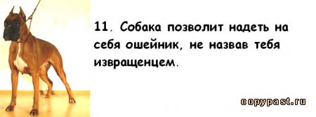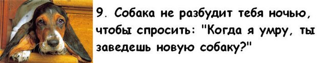 13 причин почему холостые мужчины предпочитают заводить собаку, а не жену Читал только что.На вопрос мужчины:"Не завести ли мне собаку?"Девушки чаще всего отвечают:"Заведи лучше меня." -------------------- Все виды неприязни ко мне прошу выражать исключительно в суицидальной форме