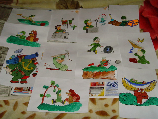 Вечер первый: расположившись на полу (отсюда половое-секретное) штаб квартиры №2 и не только эскизы и получился у нас вот такой набор картинок вечер второй: совершив вечерний намаз продолжила задуманное, был вырезан щит и отдан на покраску щит высох, приступили к культовой табличке М49 и вот торжественный момент, табличка получился вот такой промежуточный результат вечер третий (решающий): команда собралась доделать свою работу, а заодно подготовить и задание ОРГам на этом мы и закруглились и поздравили друг друга с окончанием работ над нашей поздравлялкой.... но тут же встал другой вопрос..., где взять Камаз, что б ее привезти???? Сообщение отредактировал GOLLANDEC - 23.2.2011, 18:18 -------------------- |