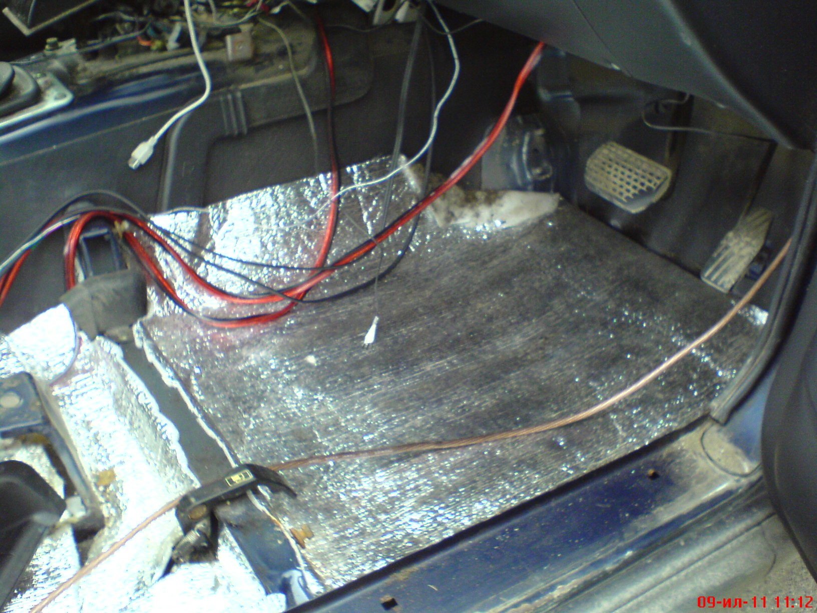 моя проекта готова почти ))) остались двери но руки болят ппц ) первый слой шумка 3м всего ушло 9 листов сверху самоклеющийся термофол продается в герлионе брал 5 метров хватило около рубля вышло . родной пол пришлось гдето резать т.к в натяжку ложился ))) но тихо как в кроуне ) с вахты приеду добью ... и дырку заварили )))