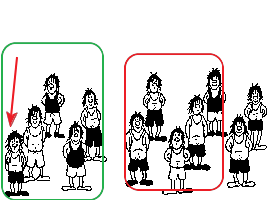 зелёная группа меняется местами с красной группой. А поскольку мужик, отмеченный красной стрелкой, остаётся БЕЗ МАКУШКИ, то двое левых в красной группе превращаются в троих в зелёной группе. Ну а трое правых красных заменяются на двоих правых зеленых.