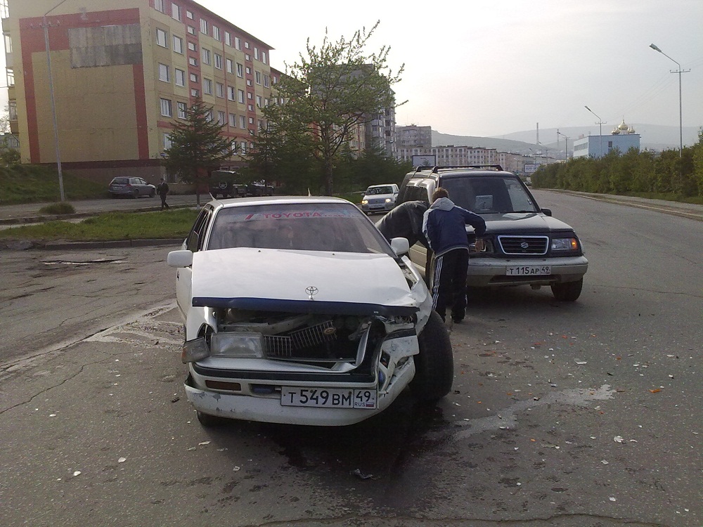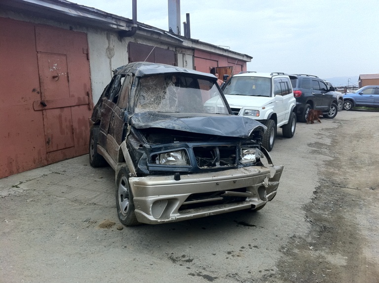 Вчера на автодороге Магадан-Талон (Арманская трасса) на подъеме на первый от Магагадана перевал увидели в кювете Эскудо... В очень хреновом состоянии. Кувыркался он: крыша сложилась, стекол нет, запчасти по лесу раскиданы, масло из всего что можно льется, руль вырван. Его обогнал Кроун и подрезал. Уходя от удара Эскудо ушел в кювет. Мы даже не смогли его вытащить пока не приехал эвакуатор.