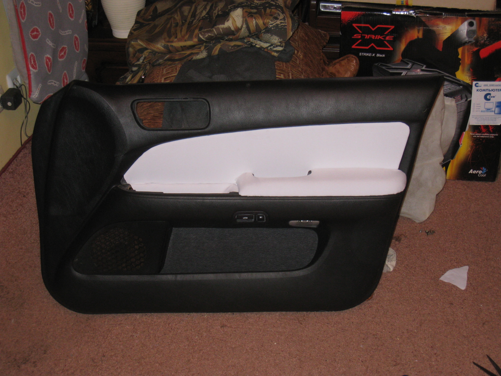 эх , вот сегодня и над дверьми я поиздёвкался так сказать хочу интерьер поменять=))) кожу ненашол(был везде) кроме речной, вот то что вышло=))) вобщем ни чо сложного нет, теперь можно и кожу брать но сказали что аж в августе будет=(((((