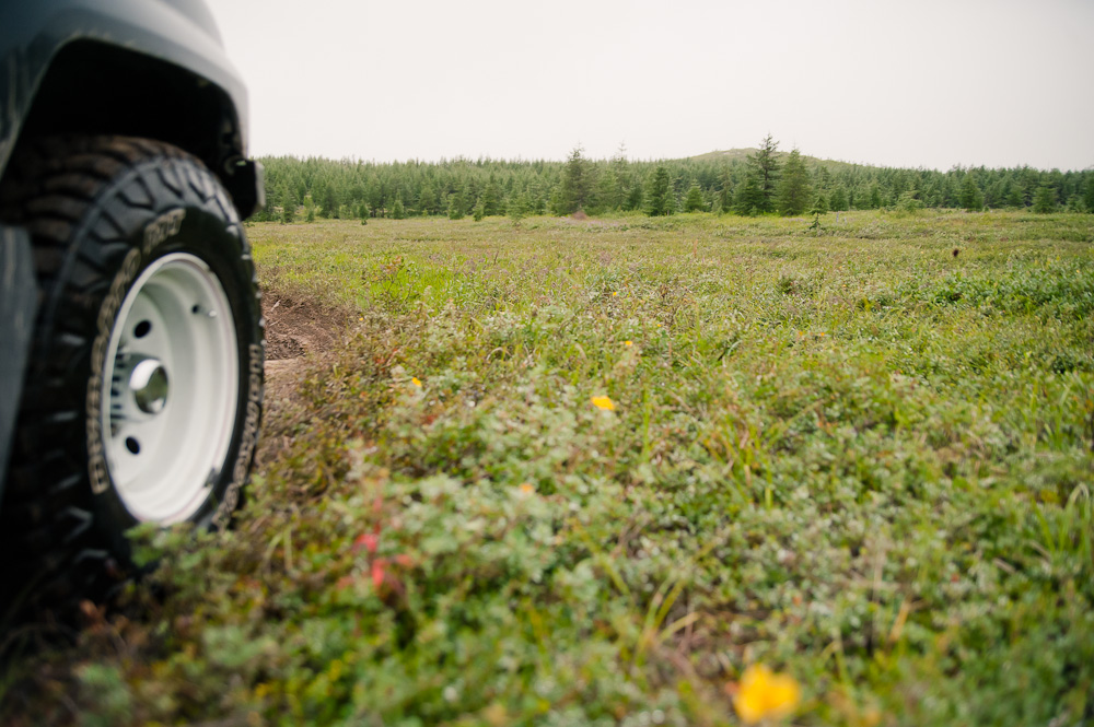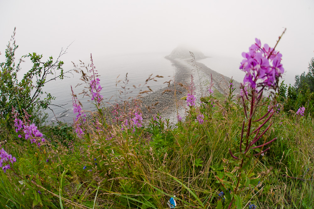 а слева от дороги (там где пушка) перед поворотом дороги наверх к развалинам очень много морошки сейчас должно быть.