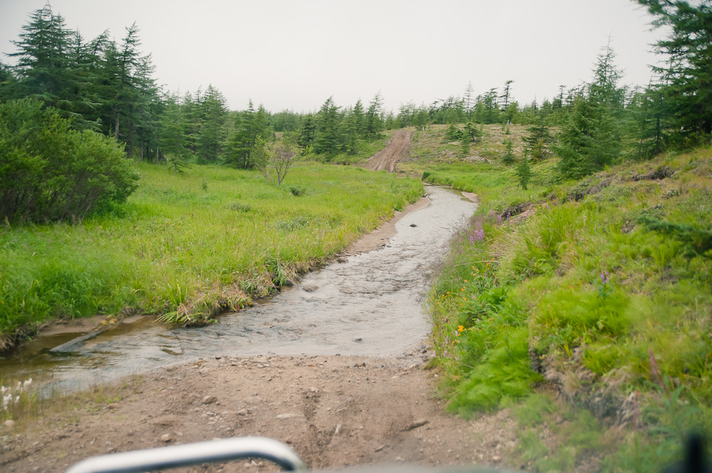 Вот и прокатились на это чудное место в одну машину... Ехали по нижней дороге вдоль водохран.. Время в пути без остановок в один конец 2 часа, средняя скорость 10 км/ч, общее расстояние туда-обратно примерно 39 км. Максимальная высота на перевале 250 м. Это примерно середина пути. Получилось связаться по радиостанции с городом. Мальдяк находясь на якутской ответил носимую радиостанция, а я c автомобильной. В общем дорога сухая, объездами не пользовался. На вторым водохранилищем много жимолости и голубики. На стоке проехать можно но я бы это делал подумав и аккуратно, не спеша шансы закоцать пластик и глушитель велики.