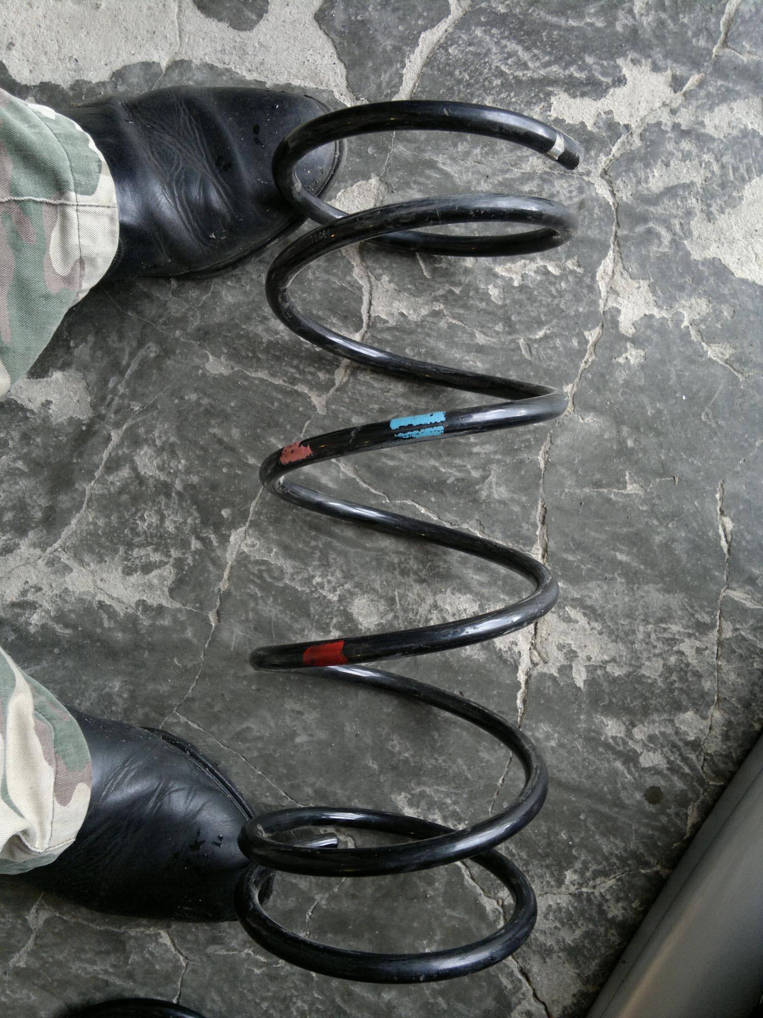Товарищи, а кто знает свойства вот таких пружинок? Никто не разбирается в цветовой гамме? На моем стоят пружины с двумя белыми полосками и немного просели уже, а эти новые лежат, только диаметр 12 мм против моих с 13 мм. Вот думаю мож они выше и жестче...