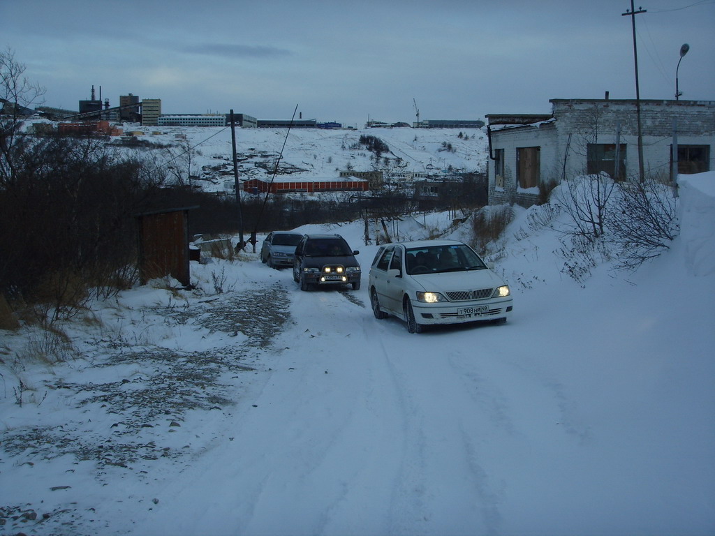 оказваеться встретить грейдер в начале пути - хреновая примета, или просто нада свалить все на кого-то: Как вы знаете мы собирались на конечке в марчекане, ждали мож кто ещё подьедет, были все веселые, бодрые, в общем путешественики, ага.. если бы мы знали на что шли.. то то все равно пошлибы! подьем преодолели вообще без проблем, но из-за ветра там было 2 или 3 не помню снежных гребня, которые в общем то не представили сложности для вэдових пузотерок, а вот Саньку пришлось постараться: Кст нада сказать что Домани вела себя очень достойно в снегу. но на всякий случай решили пустить её в перед Однако следущий нанос снега оказался ей не по зубам, и в перед бодро вырвался втрой его брат - хонда сивик шатл, вот это блин настоящая машина! она чесно пробивала всю оставшуюся дорогу. тут же, по пробитому шатлом, пути рванула в бой младшая сетрица.. как оказалось - зря.. тут я заметил что не смотря на прелести всей этой оффроудовой бодяги и наличае рядом всяких страшных совковых зданий, тут все же можно сотворить кросивый пейзаж: через несколько минут я пробился за шатлом на полянку названую нами чекпойнт номер один а внизу тем временем началась какаято возня, которая при ближайшем рассмотрении оказалась походной колесомонтажкой: Санек на столько увлекся преодолением оффроуда и снежных говен что не заметил гвоздик так нипишите кто нибуть что нибуть а то мне форум не дает картинки вставлять так.. я пшел спать, продолжение завтра |