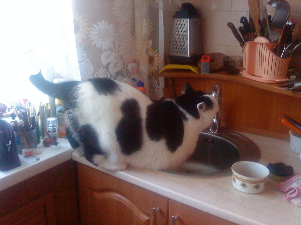 я вот где-то слышала, что есть нормальные коты, которые любят лежать на диване, на кресле, на подоконнике над батареей, на руках у хозяина, в общем там, где тепло и мягко А мой вот где от жары спасался... -------------------- Я желаю всем счастья!!!Когда внутри погибает нытик, и не волнует, что скажет стая. Когда сама себе первый критик, корона держится, как влитая. |
