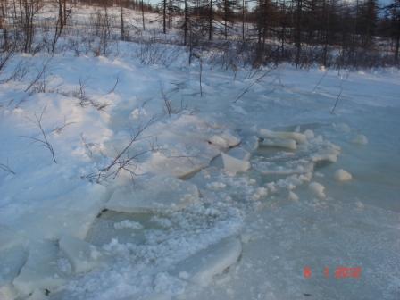 Пытались проехать на Манинжу – безрезультатно. Обкатывали две дороги, для нас новые. С Сначала пошли от ЛЭП вниз, через лес – выехали слишком далеко от нужного места. Покатались по льду, переметает на глазах, буриться негде. Вернулись до развилки, дорога накатанная, попели. Оставалось чуть-чуть (!!!) – уперлись в свежую наледь, с сопок воду давит. Да и пошел везде лед под снегом , машину сносит с колеи, в общем, не есть хорошо. Хотя перед нами кто-то, похоже, проехал.