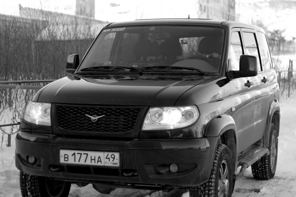 Это проблемы с конкретным авто в конкретных руках и уж ни как не характеризует всю линейку))) Вот у меня на днях была проблема! Всем проблемам проблема! Лампочка ближнего света в правой блок-фаре сгорела Пробег почти 6000. Расход в декабре вырос до 24л./100км. В мороз печка показала себя хорошо, включаю на минимальных оборотах, тепло. Из грустного. Потерял (или скомуниздили) пластиковый колпачок, закрывающий гайку оси крепления дворника. Надо попробывать крышку от пластиковой бутылки, по размеру похожа. -------------------- Водитель УАЗа не должен быть мнительным!