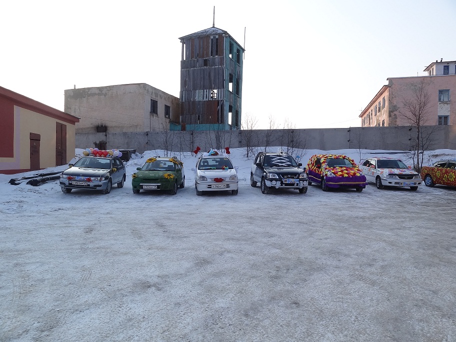 Остальные машины украшались так, словно не было времени, желания. Как говорится, "на отчепись" |