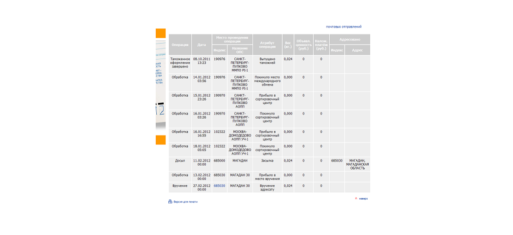GAP, два примера за последнее время - забугорные посылки - две с ебея - никак проследить нельзя. последнее, что было написано - они в последнем месте в нью йорке. перепробовал все, что в инете нашел по этому поводу. никто не собирался у нас номера посылок забивать. одно уведомление пришло, второе нет - сами на почту заехали-неделю посылка уже там лежит. это за мои личные посылки