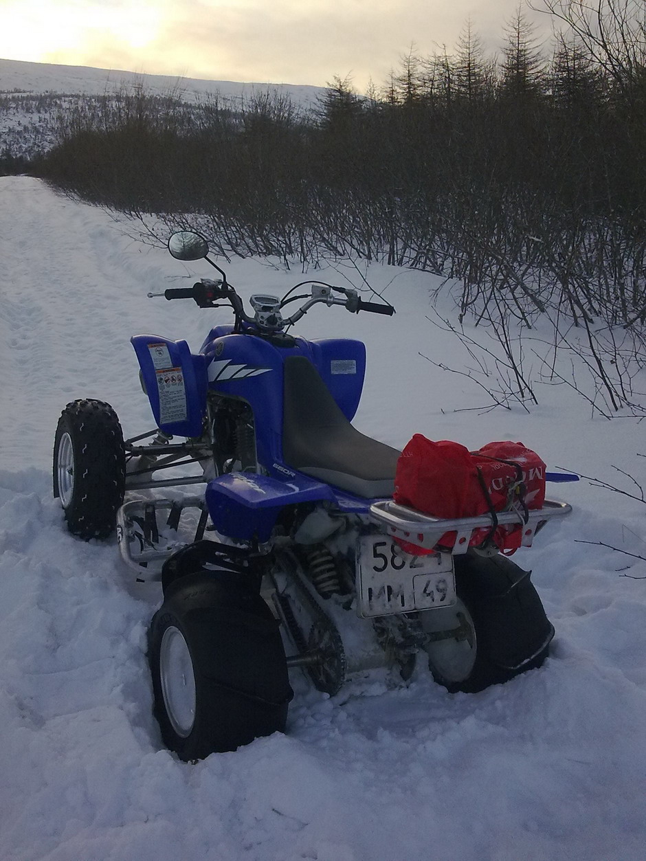 А вот мы, на трех Гризлях и Каве проехали на бухту Светлая, дорога только на подъем тяжелая, где то по ручью,где то по снегу, зато когда поднялись на вершину, вот там погоняли, замороженное поле и снег как асфальт, спустились на бухту, посидели , поели водочки с коньяком, и в обратный путь. Выехали в 13.00 а вернулись в 19.00, поездка выходного дня удалась.... Валера, скорректируй свой график, ведь в выходной необходимо отдыхать, и лутше больше, т.е. вместе, а в субботу встретили на Головных еще шесть квадров, но они как то не общительные , им все побуксовать хотелось, чем они и занимались всю дорогу с Головных