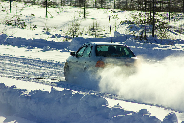 Оу е, сегодня случайно обнаружили интересную, безлюдную заснеженную трассу... Продиджей в сидюшник, разгон до 100 км