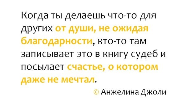Нельзя построить счастье, вытерев ноги об чужую жизнь. Люди - как музыкальные инструменты: их звучание зависит оттого, кто к ним прикасается. Будь с теми, кто делает тебя счастливым. -------------------- Стерилизуйте дворовых и домашних любимцев!