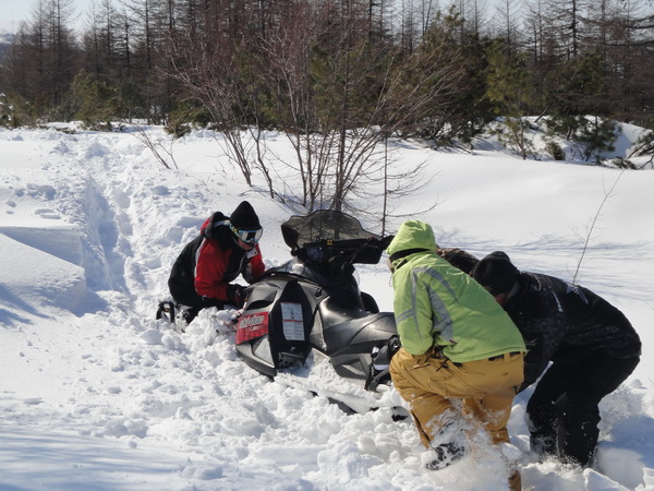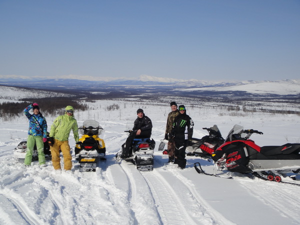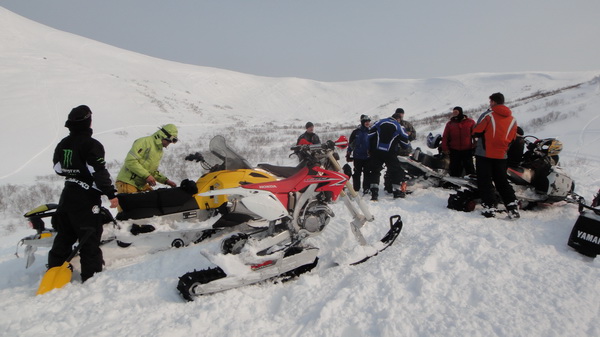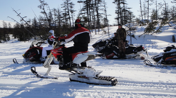 Обкатали свежий снежок...,снега по пояс .Пять снегоходов и один мотоцикл, думали по такому снегу он будет балластом, а нет- едет техника