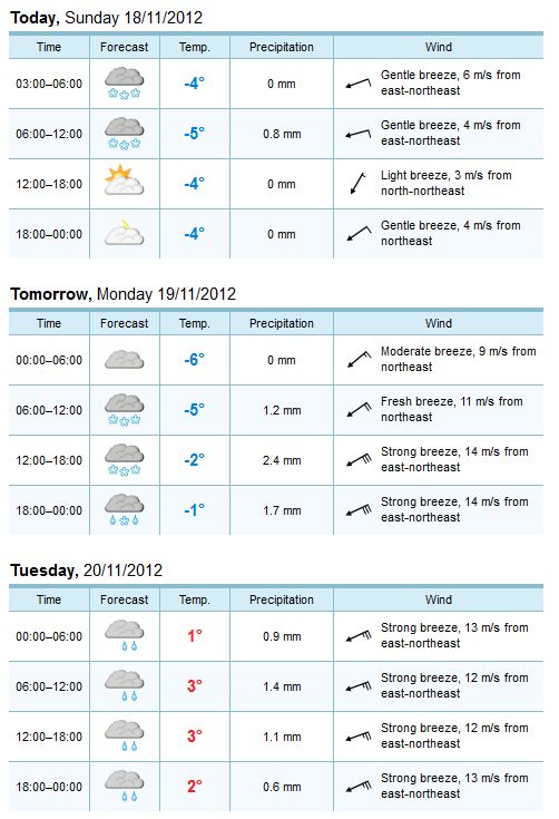 Доверять прогнозу погоды более чем на 3 дня? Имхо очень... оптимистичный подход. Вот на три дня: Норвежцы редко ошибаются. Спасибо! — MIB