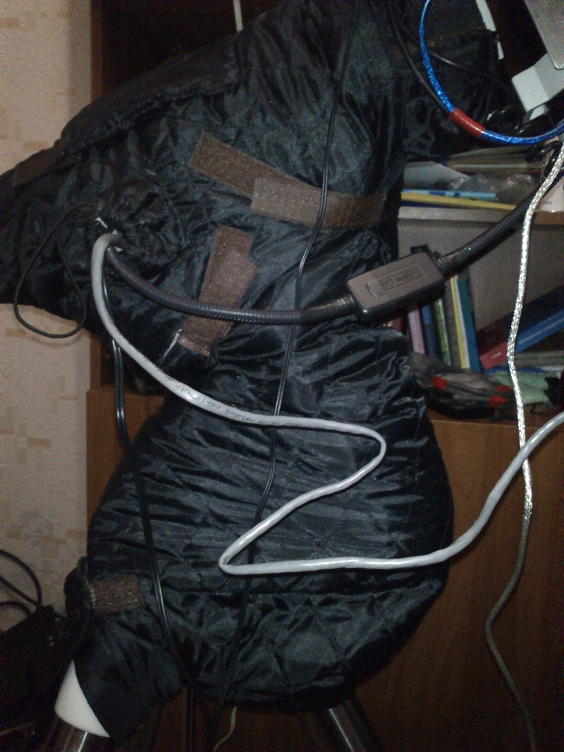 Закончил пошив чехлов на телескоп. теперь он подготовлен к зиме. обогрев монтировки дает тепло + 50 градусов. в фотике каждый резистор дает тоже около +50. но там есть небольшая дыра, закрытая 1 слоем синтепона, так что будет норм. на фот тоже есть чехол, лень одевать,надо всю трубу разобрать.)) обогрев объектива около + 30гр. Все замеры темпер сделаны дома при + 22гр. на улице в -30-35 как раз самое то)