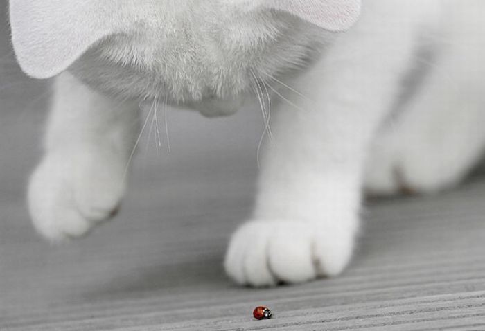 Обычно коты не так реагируют на пылесос!