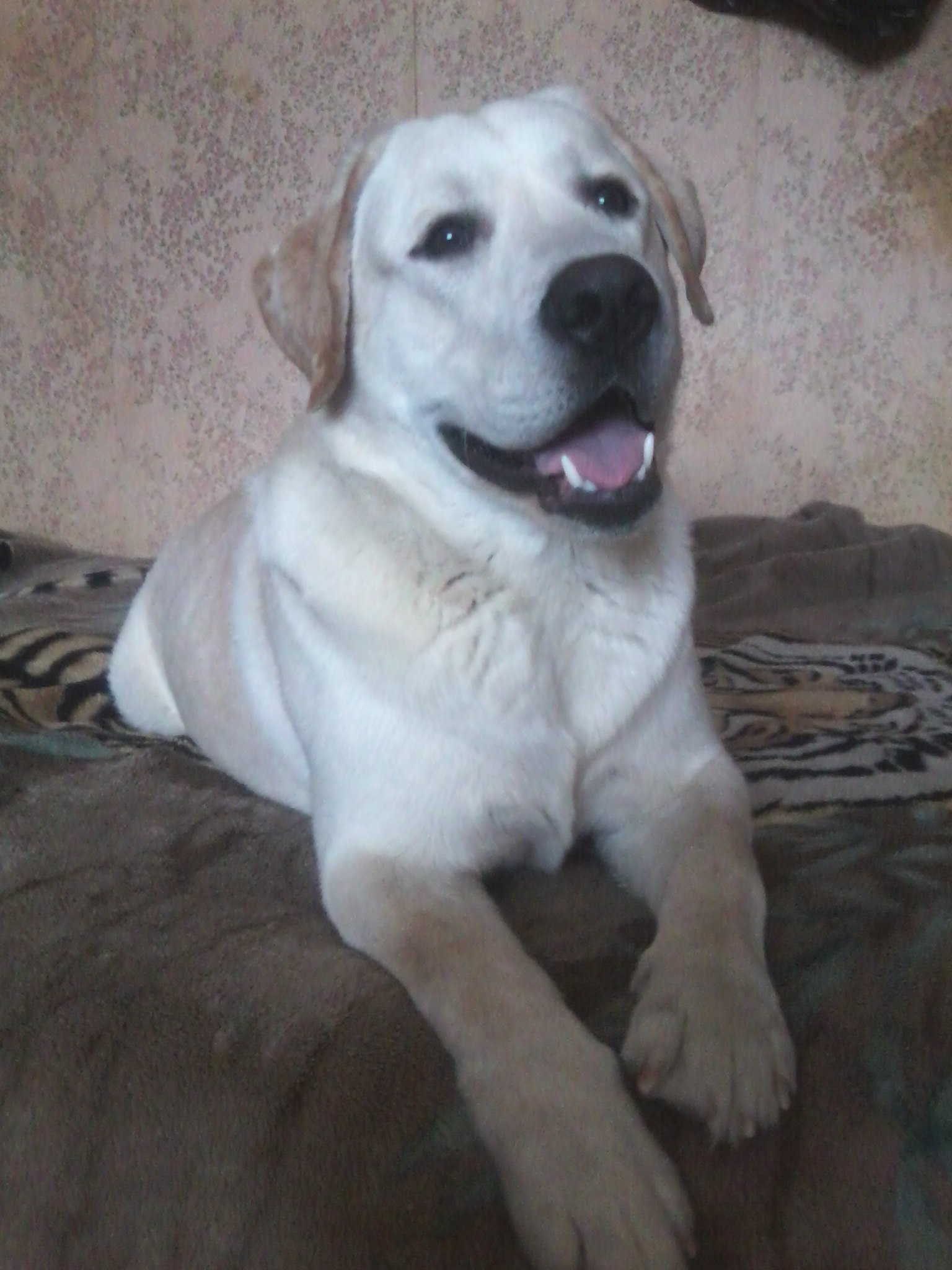 Потерялся лабрадор в р-не Автотека, магазин "555", окрас бежевый.без ошейника, без клейма, морда большая, на нижней челюсти шрам, на голове тоже шрам. Очень игривый и резвый.И очень розовый нос))