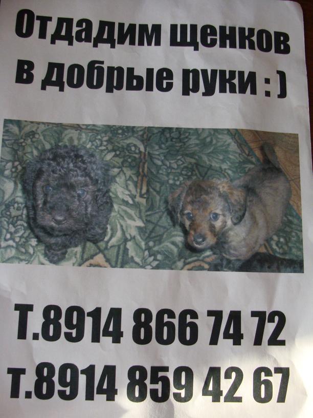 щен ласковый, добрый, а глаза какие... себе оставить не могут, поскольку есть собакевич. посему ищут добрые руки. тел для связи 89148516400, в любое время. пы.пы.сы. прошу перепостить на другие ресурсы, с рабочего компа нет доступа ни к чему. Сообщение отредактировал дезертир - 28.2.2013, 20:13 -------------------- |