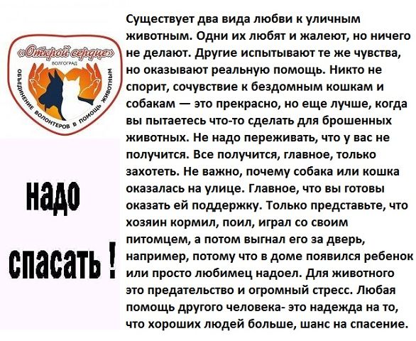 Помощь бездомным животным ВГОО "Голос друга" Старо, но очень актуально в нашей жизни «МЫ В ОТВЕТЕ ЗА ТЕХ, КОГО ПРИРУЧИЛИ!» Много агитационного материала. Мне несколько приглянулось -------------------- Стерилизуйте дворовых и домашних любимцев!